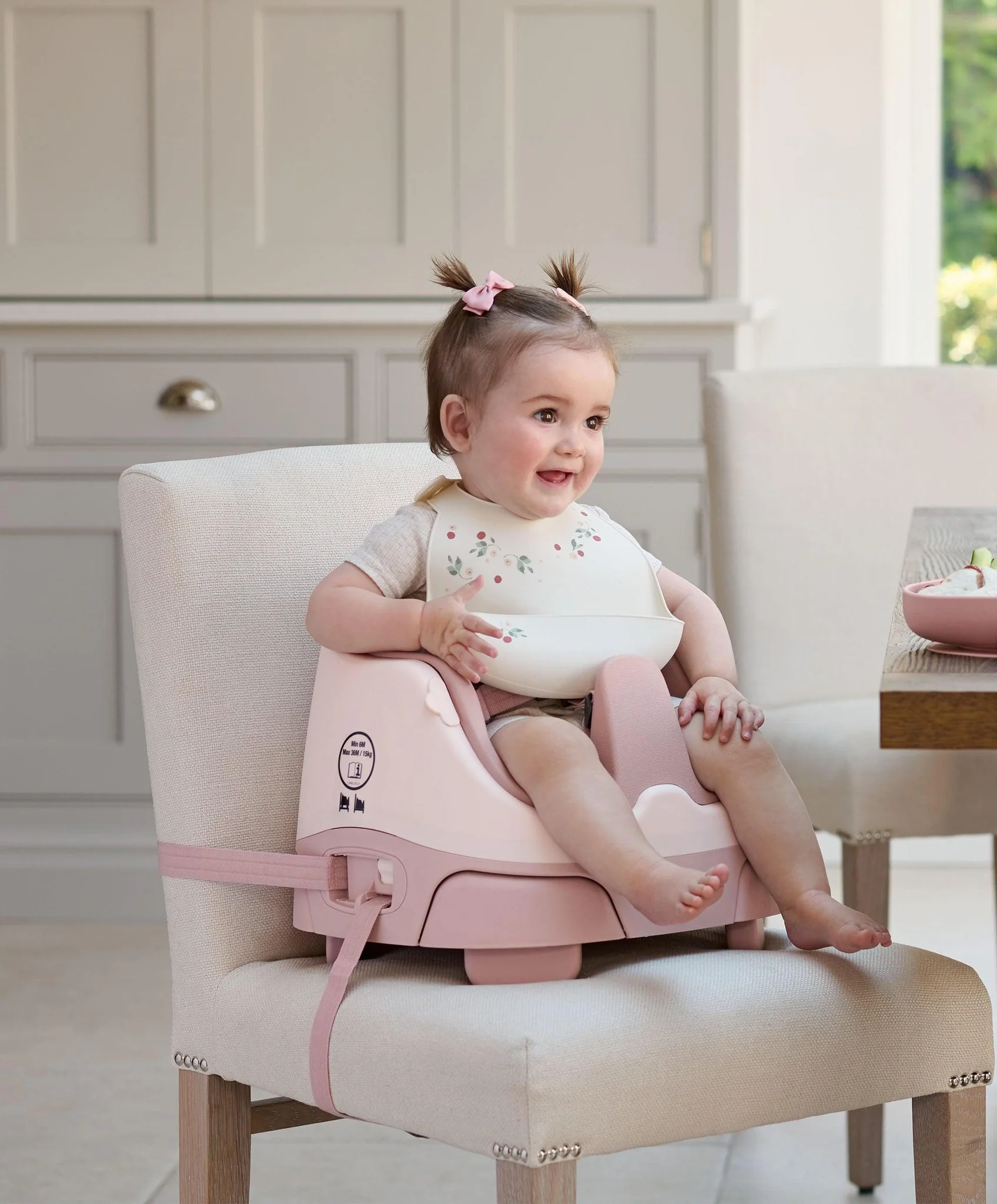 - Can be strapped to a dining chair for family mealtimes, whether at home or away.